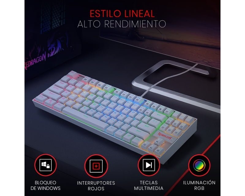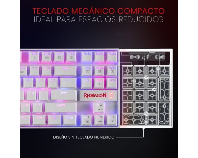 Teclado Mecanico GAMER REDRAGON KUMARA RGB Blanco Switch Red