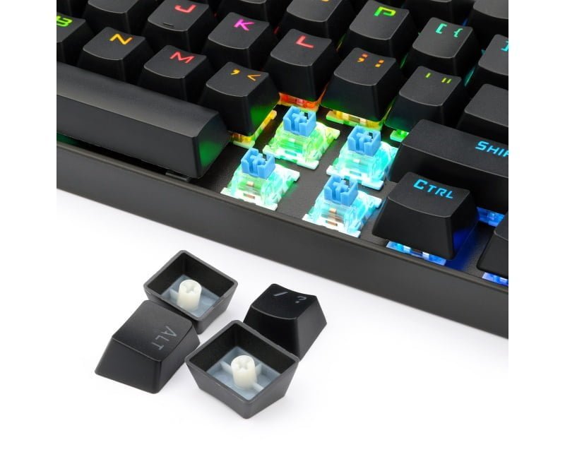 Ya conocías los teclados TKL y 60% de Redragon (Kumara y Draconic, por ejemplo, ¿te suenan?); conoce ahora este ejemplar único de tipo 70%. ¿Qué tiene de especial? Es casi tan compacto como un 60%, con lo que ahorra valiosísimo espacio para el ratón (un rasgo muy apreciado en el gaming competitivo actual), pero incluye dos bloques de teclas cuya ausencia en los 60% se siente: las cuatro flechas de dirección y las seis nobles compañeras que van desde Insert hasta AvPág (PgDn), incluyendo a la por todos amada Suprimir. En suma, una alternativa más que interesante.